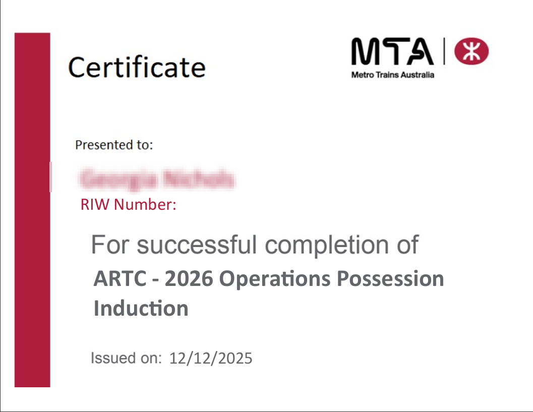 ARTC - 2026 Operations Possession Induction (ELEARNING ONLY) (EL443)