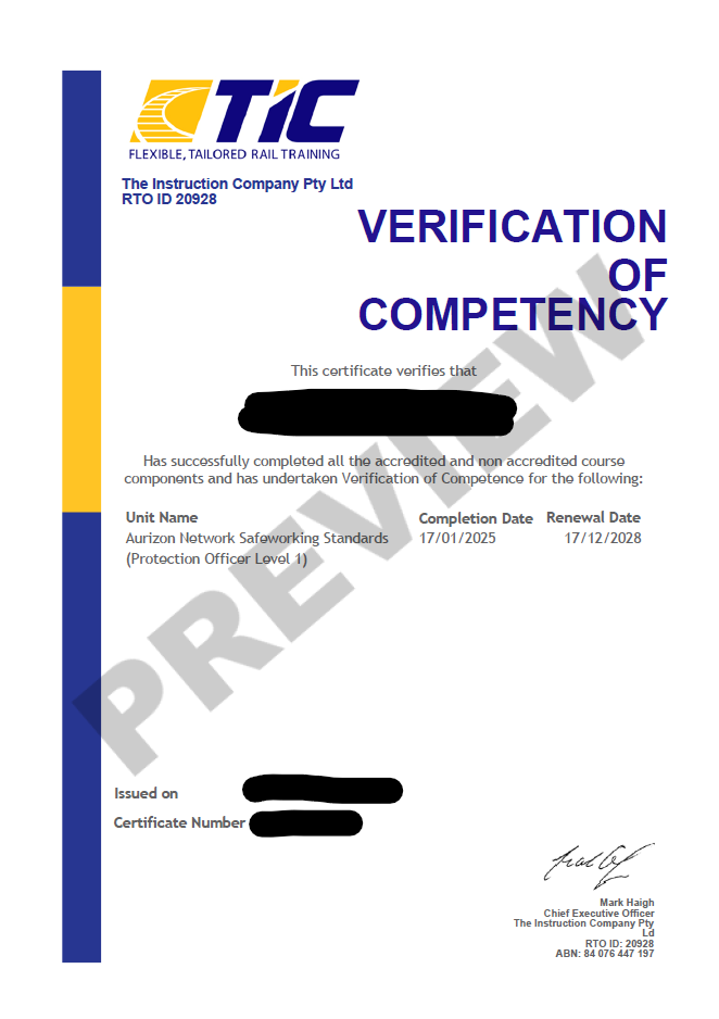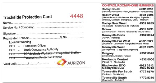 Aurizon - VoC on Aurizon Network Safeworking Standards - Protection Officer Level 1 (90308)