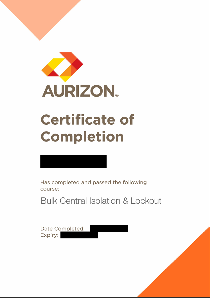 Certificate.Aurizon Network - Bulk Central Isolation and Lockout (92344)