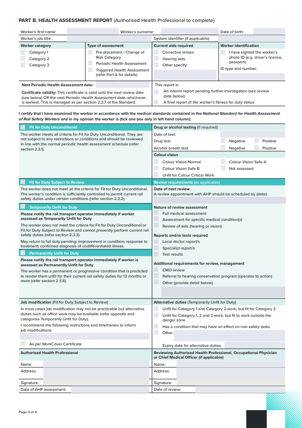 • If the testing is included as part of the assessment, the expiry of the testing MUST fall in line with the Rail Health (Medical) Assessment.