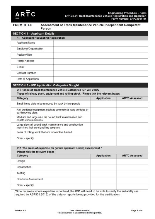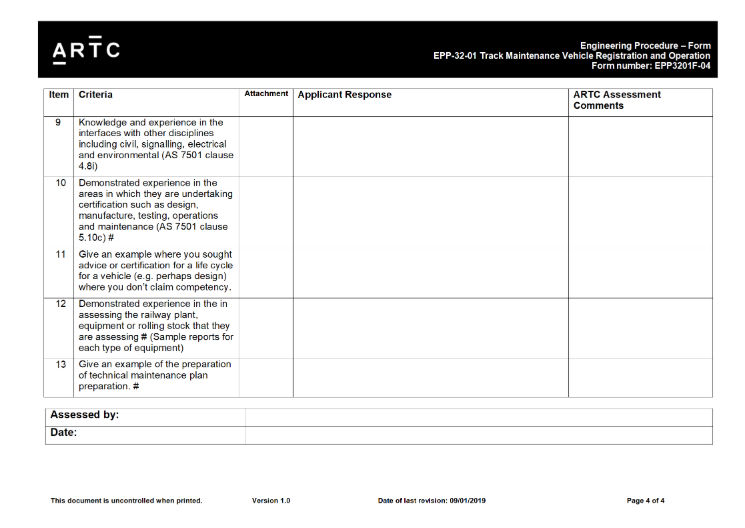 - Assessment. ARTC - Independent Competent Person (ICP Rail Vehicles) Path 1 (095152)