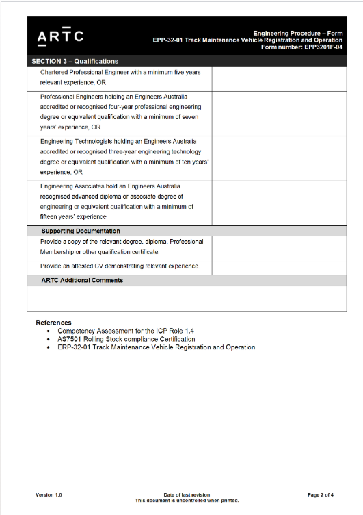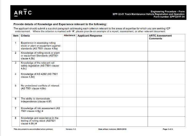 - Assessment. ARTC - Independent Competent Person (ICP Rail Vehicles) Path 3 (095154)