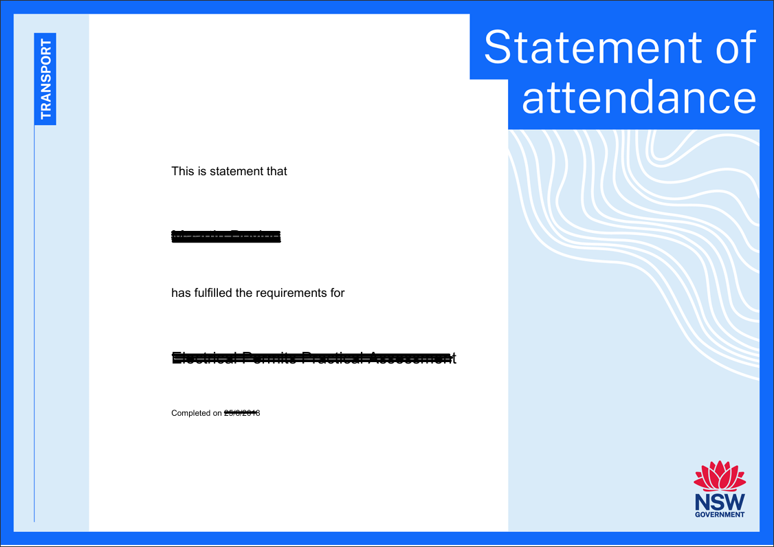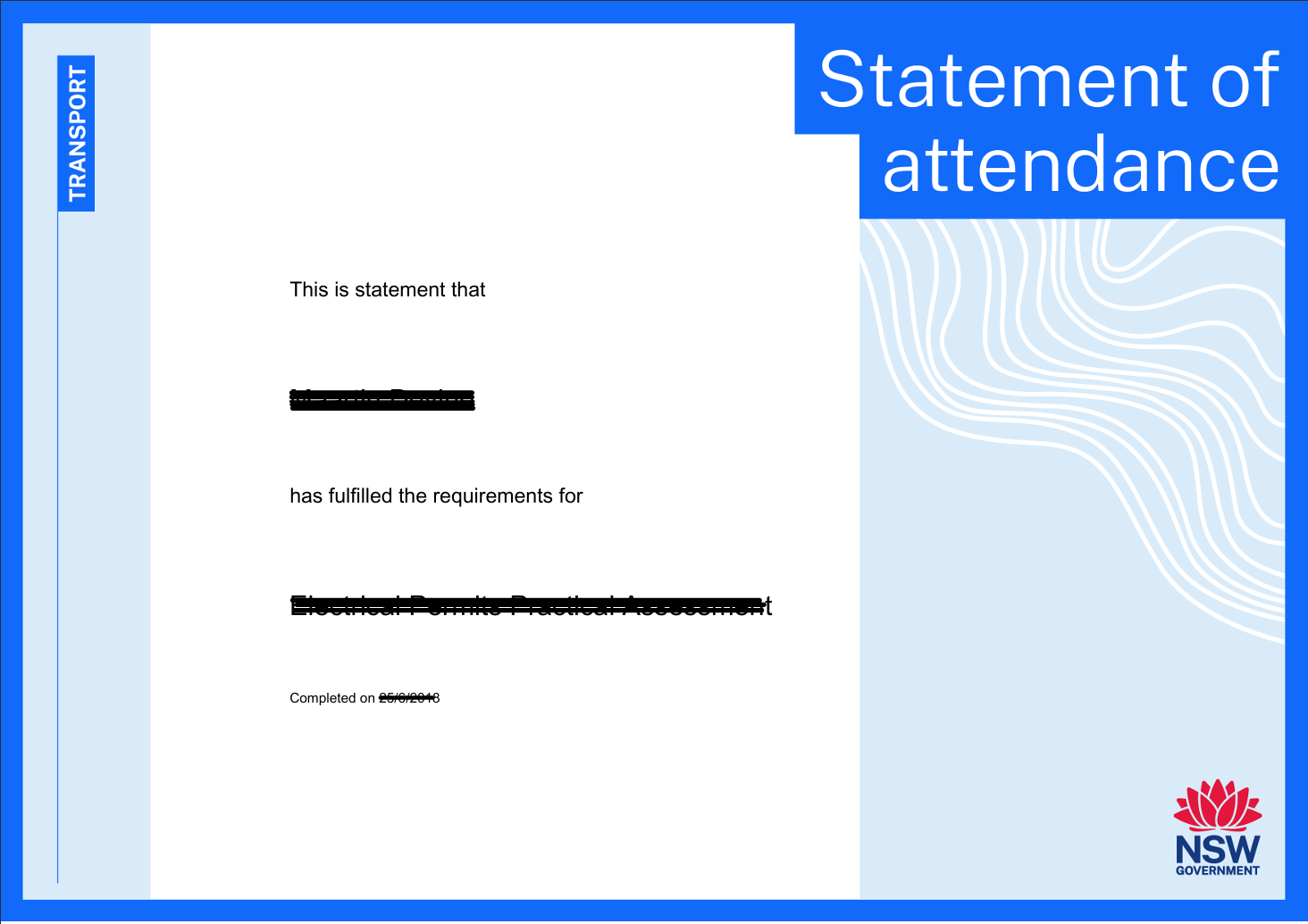 Send feedbackTfNSW Statement of Certification (AES05) Authorised Attendant (64525)