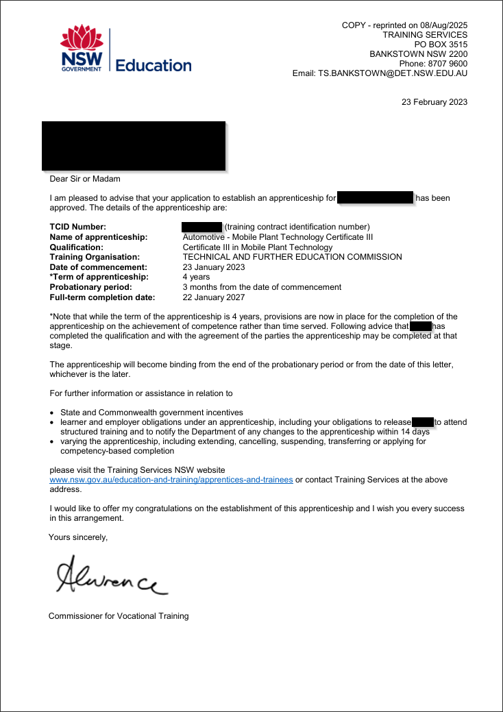 • Certificate needs to state "Maintenance and Diagnostics in Mechanical Engineering Level 4"